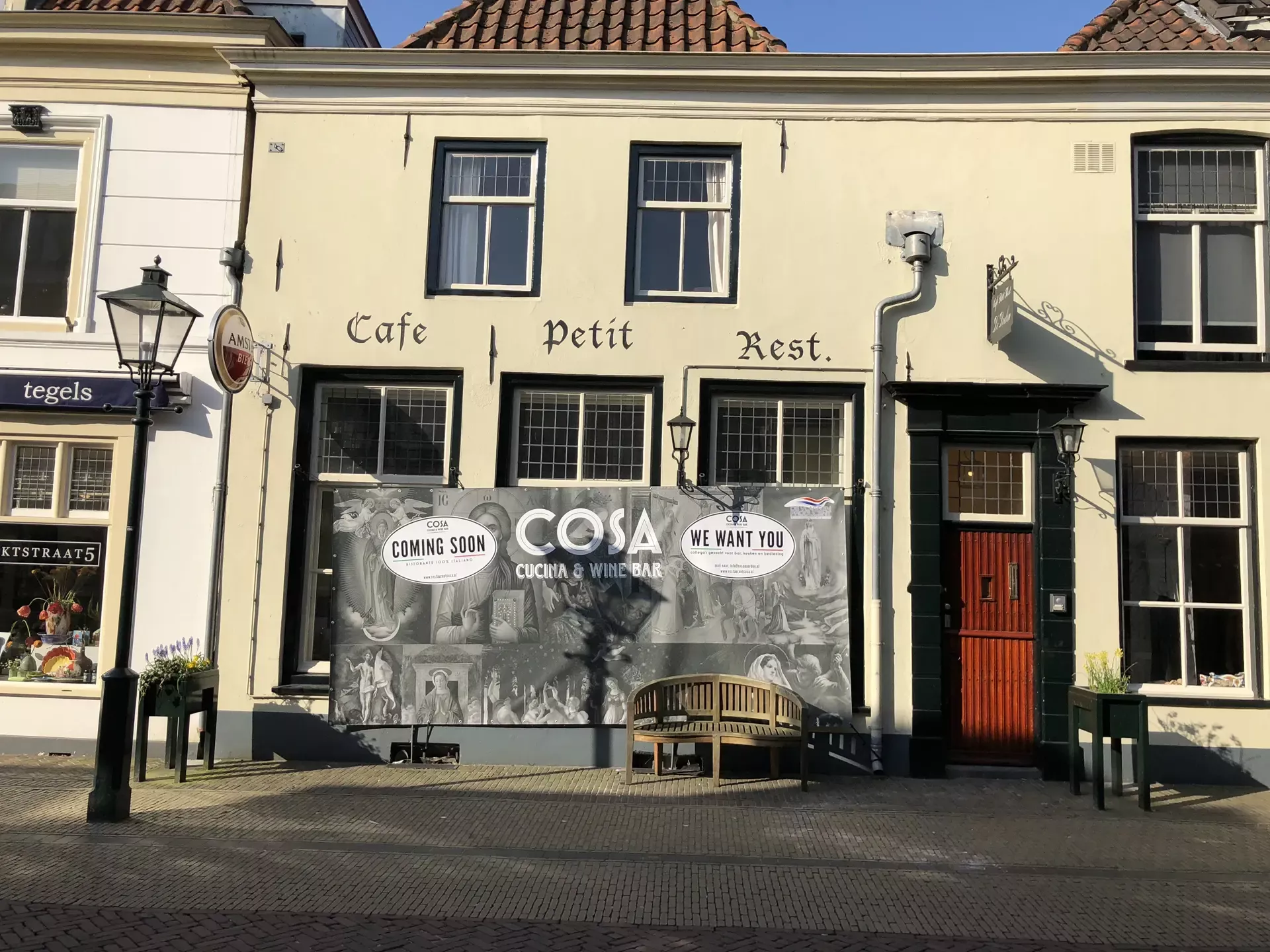 In Naarden wordt eerdaags het italiaanse resaurant Cosa geopend ( voorheen De Doelen), welke ook in Baarn is gevestigd. Van Amsterdam neemt het stukaddoor en al het schilder en spuitwerk voor zijn rekening.